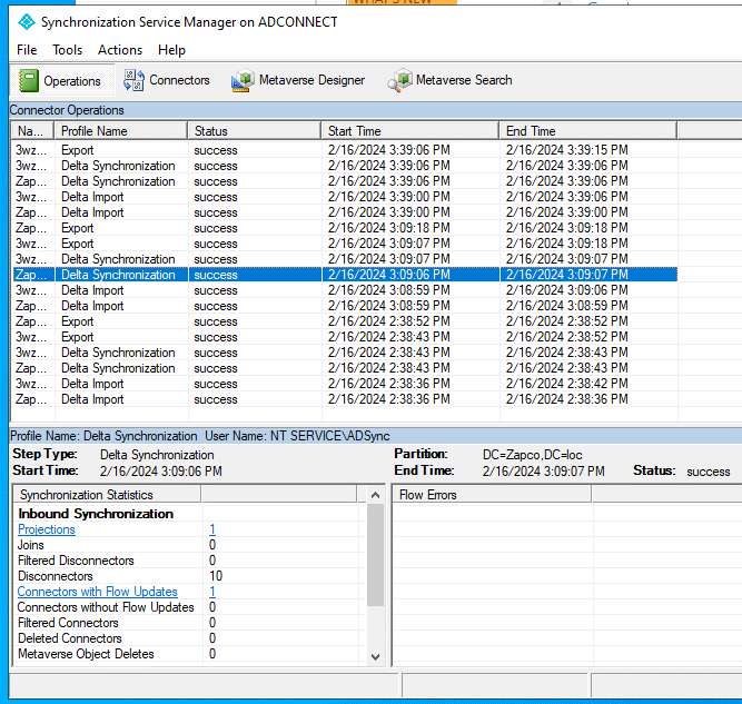 After configuring Azure AD Connect and running thesynchronization service manager, it is evident that the selected data has beensuccessfully exported to Microsoft Entera and Office 365.
